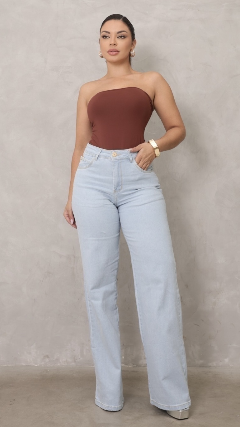 Calça reta Sol Jeans com cinto prata