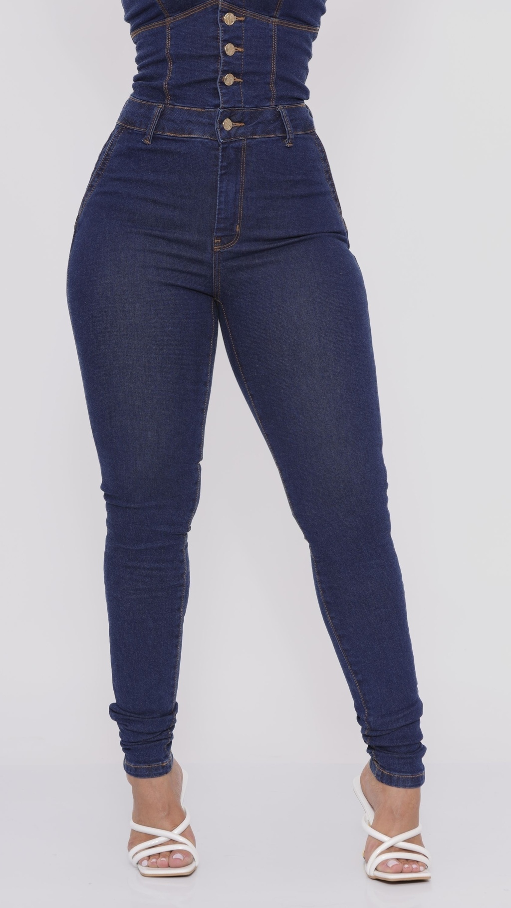 Macacão longo botões frente alcinha Sol Jeans